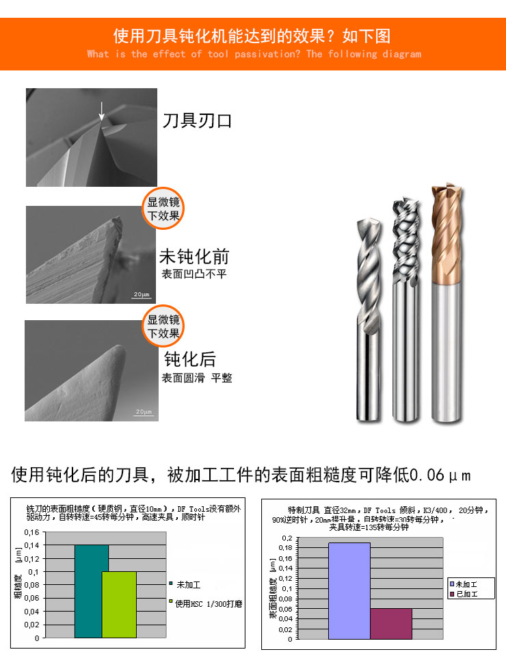 1.刀具鈍化后提高刀具的使用壽命。